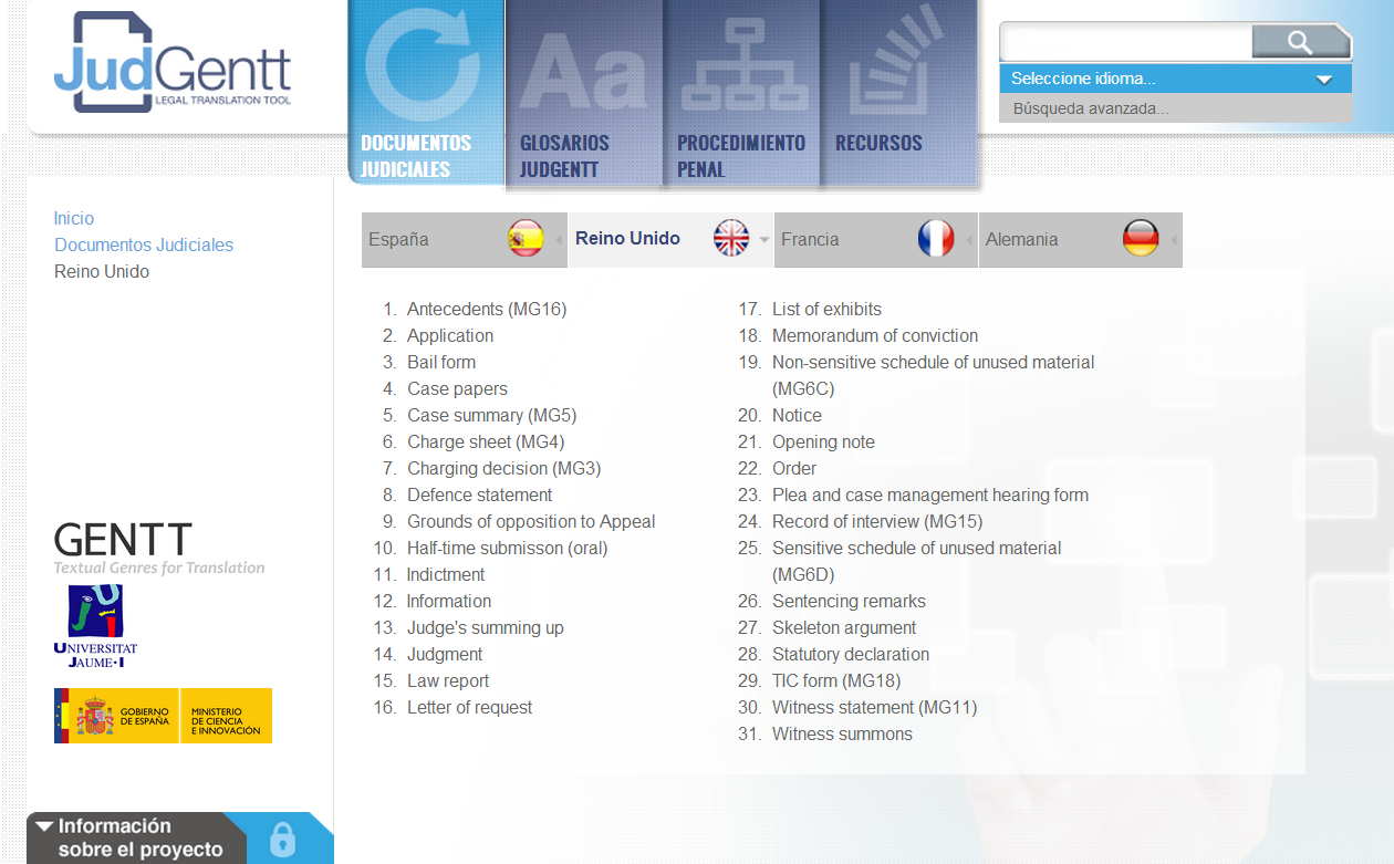 This article describes an action research project on multilingual management and translation of court documents developed by the GENTT research group, which postulates that the notions of ‘textual genre’, ‘genre system’ and ‘meta-genre’ can be powerful tools for accessing and ‘reusing’ the linguistic and extra-linguistic information technical writers and translators need to manage specialised communication. To validate this hypothesis the criminal court genre systems of four countries (Germany, Spain, France and the United Kingdom) have been analysed and described from a legal-conceptual, discursive-textual and terminological perspective. The results of this contrastive analysis have been used as the basis for creating translation resources (both conceptual and linguistic), which have been organised into an online platform for translators of court documents. This platform is conceived as a knowledge system which will permit the ‘reusability’ of electronic translation resources. Our approach presents an integrative methodology for research into legal translation.